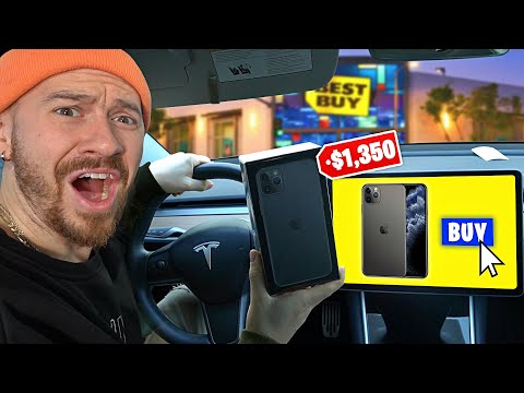 Today we're letting my Tesla Model 3 decide what I buy for 24 hours! The new tesla update created these hilarious new features that will decide whether i buy an iphone, airpods or other tech products for 24 hours today!