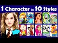 Draw Hermione (Harry Potter) in 10 Art Styles Swap Challenge | 10 Art Styles Challenge | Mei Yu ─ Mei Yu